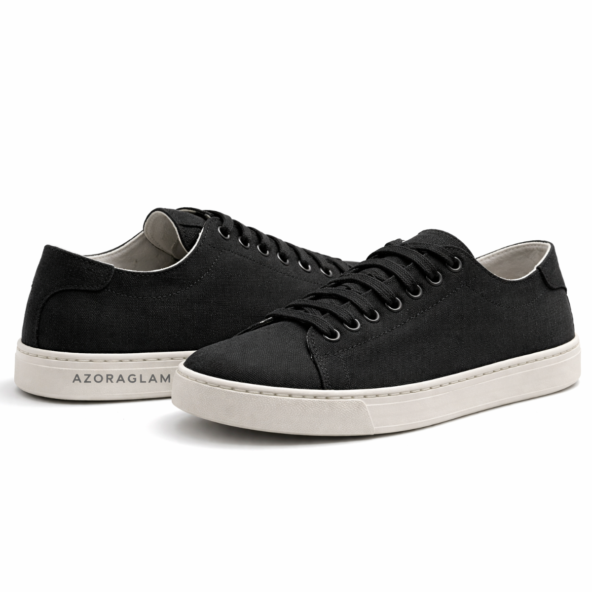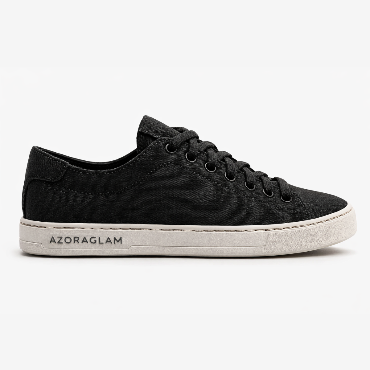 Azora Glam Minimalist Black Canvas Sneakers – Classic Low-Top Casual Shoes for Men & Women